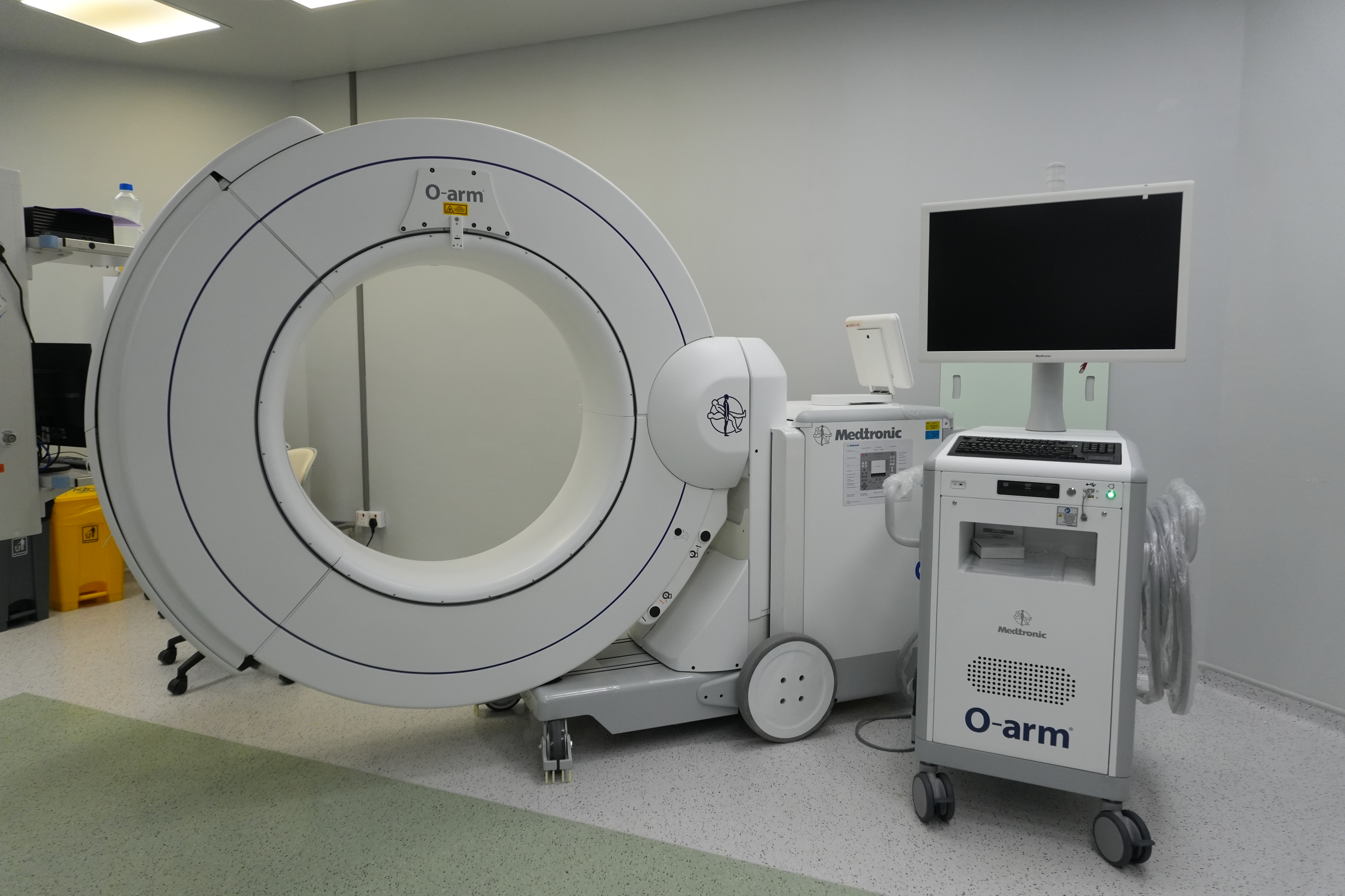 • What patients can expect: Rather than relying on static pre-operative scans, your surgical team uses live 3D images captured during the procedure itself — giving them the most accurate and up-to-date picture of your anatomy at every step. The system integrates directly with the StealthStation™ S8 Navigation System, allowing instruments to be tracked and guided with sub-millimetre precision throughout the operation.
