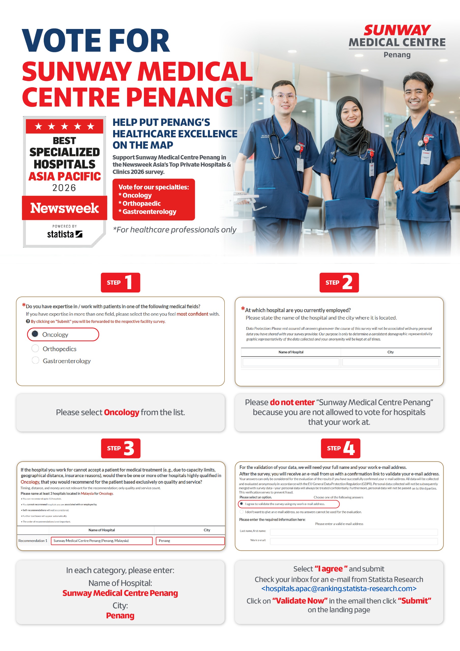 For more details, visit us at Sunway Medical Centre Penang or contact us at: 04 - 373 9191.